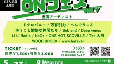ONフェス 2026年5月23日(土)_ONフェスvol.7 日程2026年5月23日(土)開場時間 / 開演時間13:30 / 14:00前売券 / 当日券1500円 / 2000円※1drink付会場栄Party'z〒460-0008 愛知県名古屋市中区栄4丁目4-17 丸八ビルB1FLINE U... ONフェス
